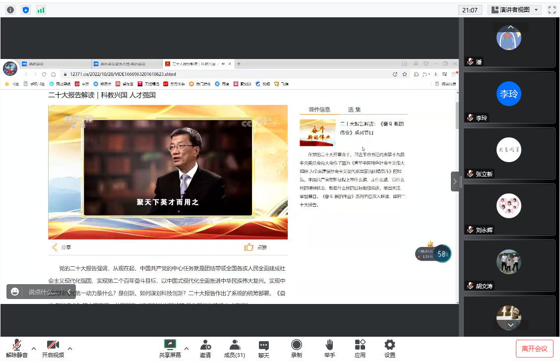 本网讯(通讯员 燕梦蝶)12月15日下午,公司教工党支部在会议室开展12月份政治学习和“支部主题党日”活动。会议由教工党支部书记呙明辉主持,支部全体教职工参加。