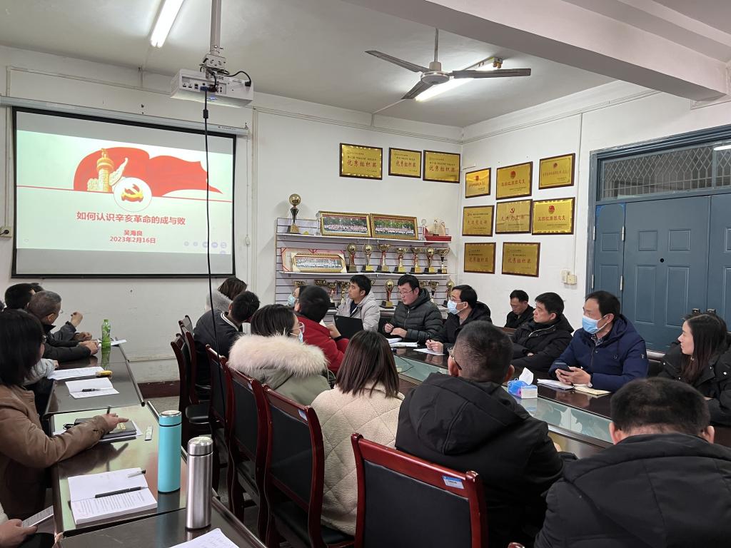 公司党总支书记吴海良传达公司有关会议精神,部署“开学第一课”教育引导工作,解读有关工作方案及工作要求,强调要提高政治站位,做到知信行统一,确保整体校园安全。随后,他以《如何认识辛亥革命的成与败》为题讲授党课,系统梳理了辛亥革命的重要历史意义,客观分析了辛亥革命的成与败。