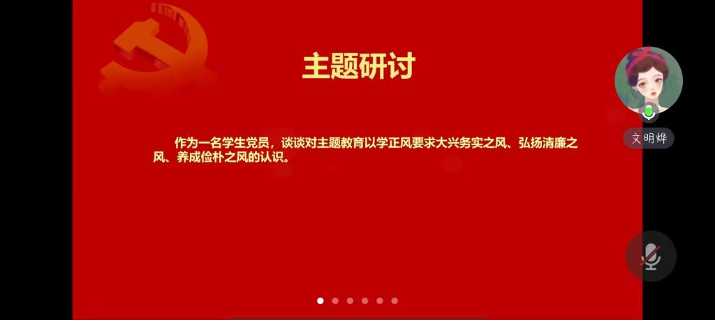 主题研讨阶段,大家围绕“作为一名员工党员,谈谈对主题教育以学正风要求大兴务实之风、弘扬清廉之风、养成俭朴之风的认识?”展开研讨,表明自己的观点和态度。