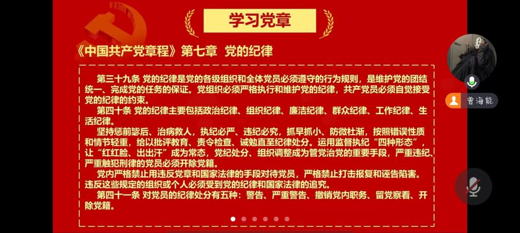 本网讯(员工记者 孟娜)7月14日中午,在腾讯会议上,公司开展员工党支部7月份政治学习和“支部主题党日”活动,会议由曾海能同志主持,员工党支部书记成观雄出席,支部全体党员参加。