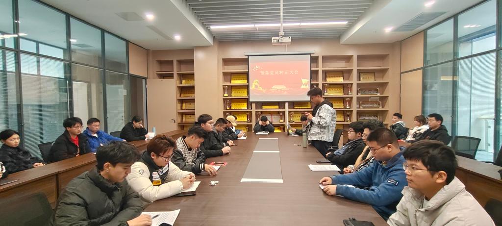 本网讯(员工记者 孟娜)12月8日中午,公司员工党支部于VSport会议室召开预备党员转正大会。大会分为预备党员转正、入党宣誓两个阶段,会议讨论表决张钦浩、王子鹏两名预备党员的接收事项。员工党支部书记王大专主持会议,相关培养考察人一同参与。