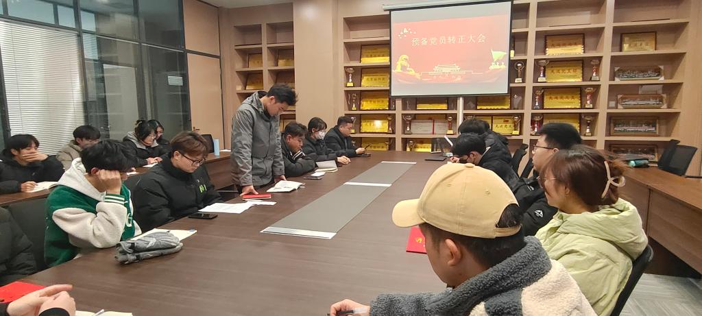 本网讯(员工记者 孟娜)12月26日中午12点,公司员工党支部在会议室召开预备党员转正大会。会议讨论表决张皓同志转为正式党员事宜。员工党支部书记王大专老师主持会议,支部成员和入党介绍人一同参加会议。