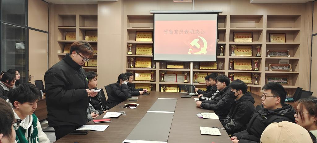 会议开始,支部纪检委员汇报出席会议的党员人数,表示到会人数符合要求,可以继续开会,预备党员张皓依次从思想、学习、生活、工作等方面向支部大会汇报自己的现实表现、成绩和进步情况,剖析自身的缺点和不足,并表明自己的态度和决心,以及需要向党组织说明的其他情况。随后,该同志的入党介绍人介绍其预备党员期间的培养和考察情况,并对是否同意其按期转为正式党员表明意见和态度。接着支部委员会代表赵傲博同志报告对张皓同志的审查情况,对其能否转为正式党员提出讨论意见,与会党员充分讨论并对此发表意见。