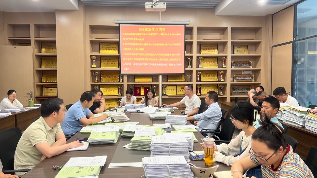政治学习阶段,呙明辉带领大家集体学习习近平主持中共中央政治局会议—— 决定召开二十届三中全会;习近平在重庆考察时的讲话:“进一步全面深化改革开放,不断谱写中国式现代化重庆篇章”;习近平主持召开新时代推动西部大开发座谈会上的讲话:“进一步形成大保护大开放高质量发展新格局,奋力谱写西部大开发新篇章”;学习语——全面加强党的纪律建设;《中国共产党纪律处分条例》第1—7章;湖北省委常委会党纪学习教育读书班开班式;论弘扬教育家精神;《湖北省科学技术进步条例》(2024年3月27日修订)等重要内容。