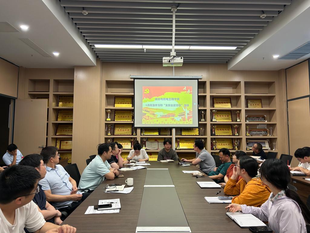 本网讯(通讯员 王妍柳)6月12日下午,公司教工党支部在VSport会议室开展6月份政治学习和“支部主题党日”活动。会议由院教工党支部书记呙明辉主持,支部全体教职工参加。