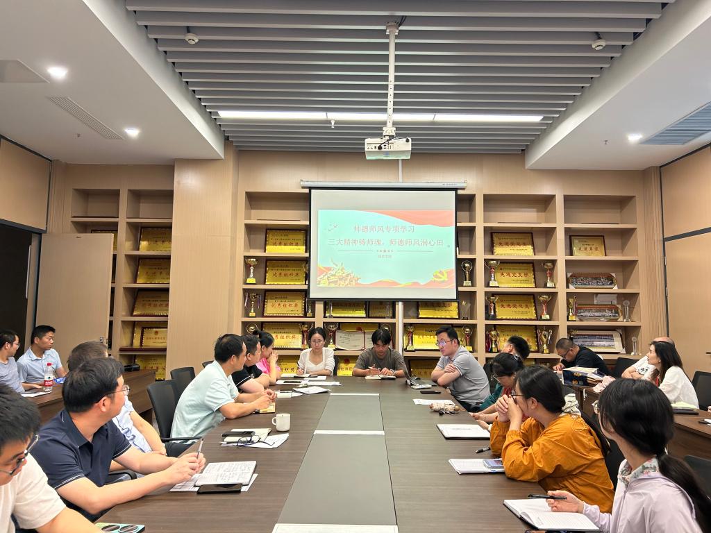 接下来,会议组织开展了“三大精神铸师魂,师德师风润心田”师德师风专项学习,组织号召大家以劳动精神为底色,以劳模精神为引领,以工匠精神为传承,将“三种精神”深度融入立德树人全过程,把个人理想融入到服务科技强国建设的新征程之中。