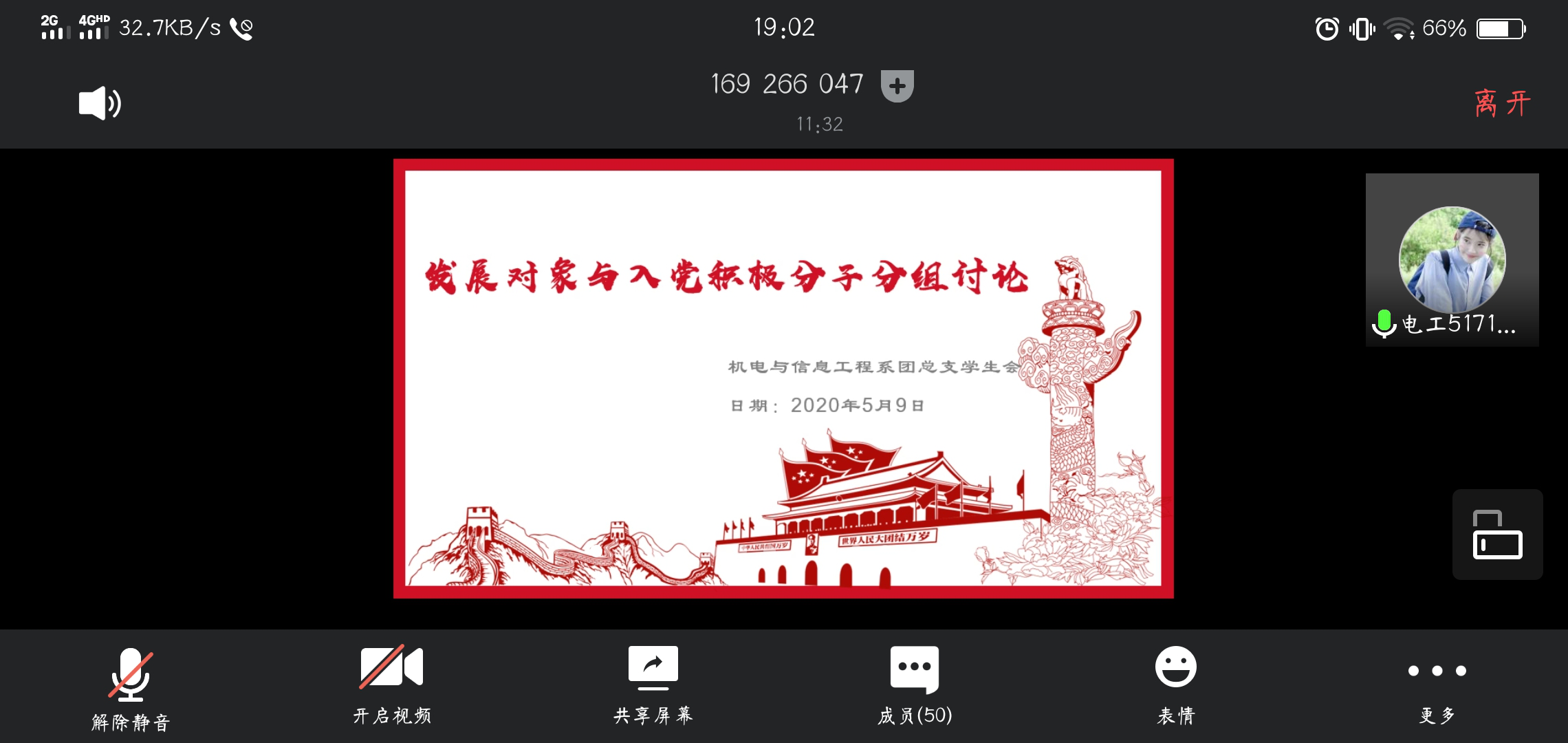 本网讯(员工记者 李丹)为规范做好党员发展工作,切实加强入党积极分子、发展对象和预备党员的培养教育,5月9日晚,在腾讯会议平台上,我系开展2020上半年分组讨论活动。会议由电工5171聂雅兰主持,我系10名预备党员、6名发展对象、45名入党积极分子参加。
