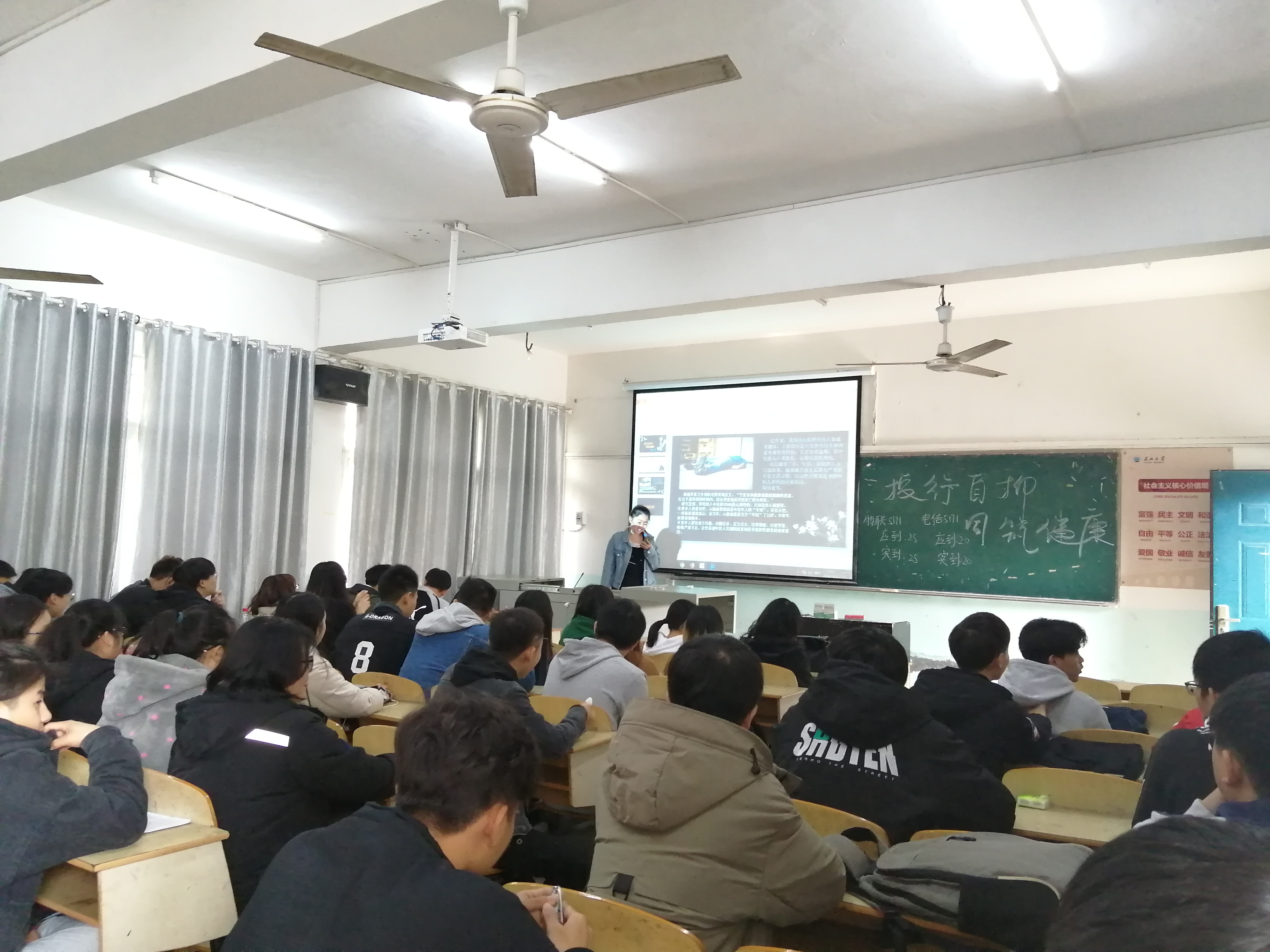 本网讯(员工记者李丹)12月5日晚,在西校区各自习室,我系各班开展“按行自抑,同筑健康”主题团课。团课由各班团支书主持,辅导员成观雄、王琳出席,班级全体同学参与。