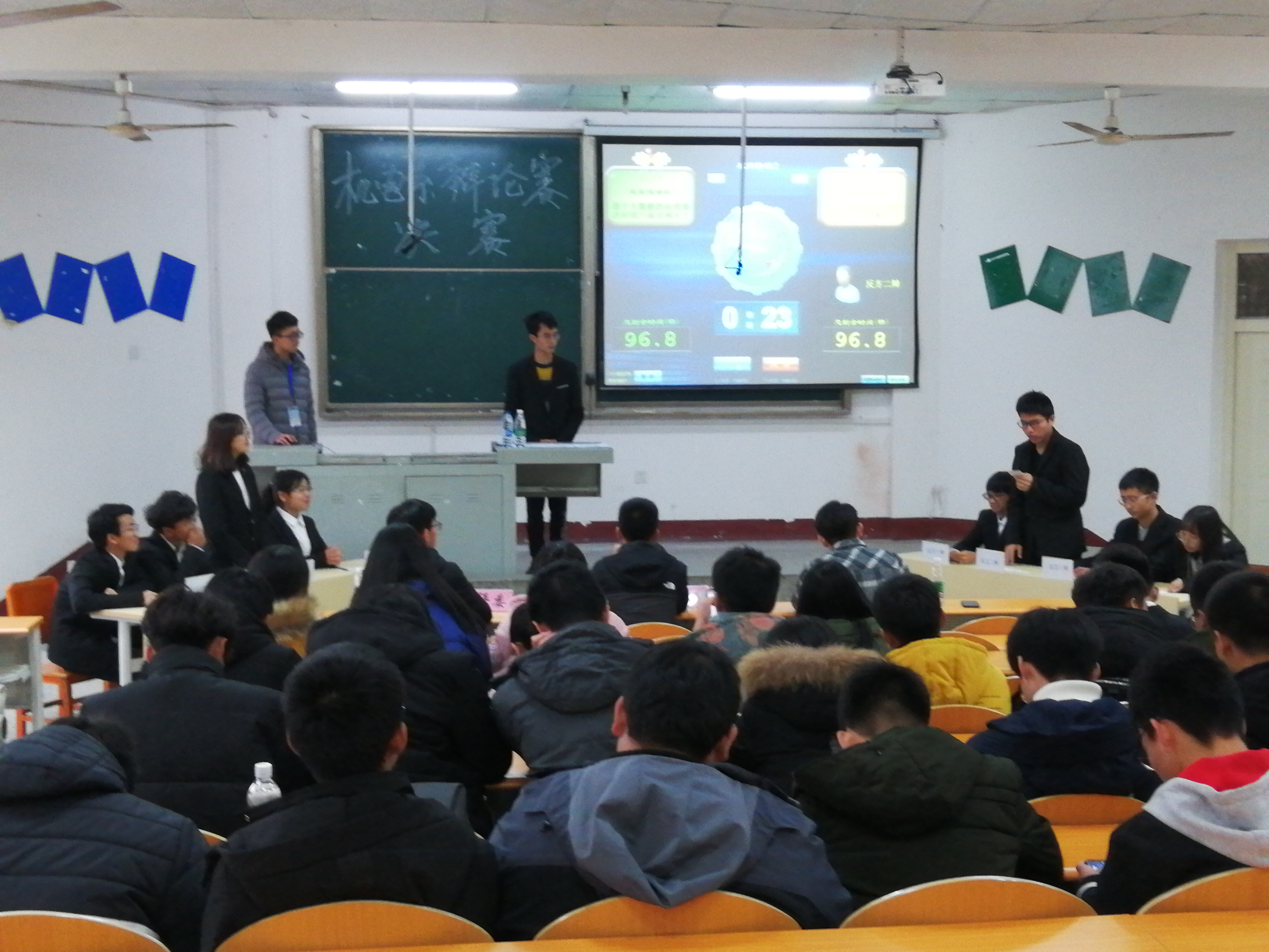 本网讯(员工记者刘文婷)12月15日下午,在西校区四教200教室,我系辩论赛圆满收官。本次决赛特邀系辅导员成观雄、演讲与辩论协会会长唐昊、系团总支副书记胡波担任评委,秘书处程继松、吴邦逸主持,近百余名同学现场观看。