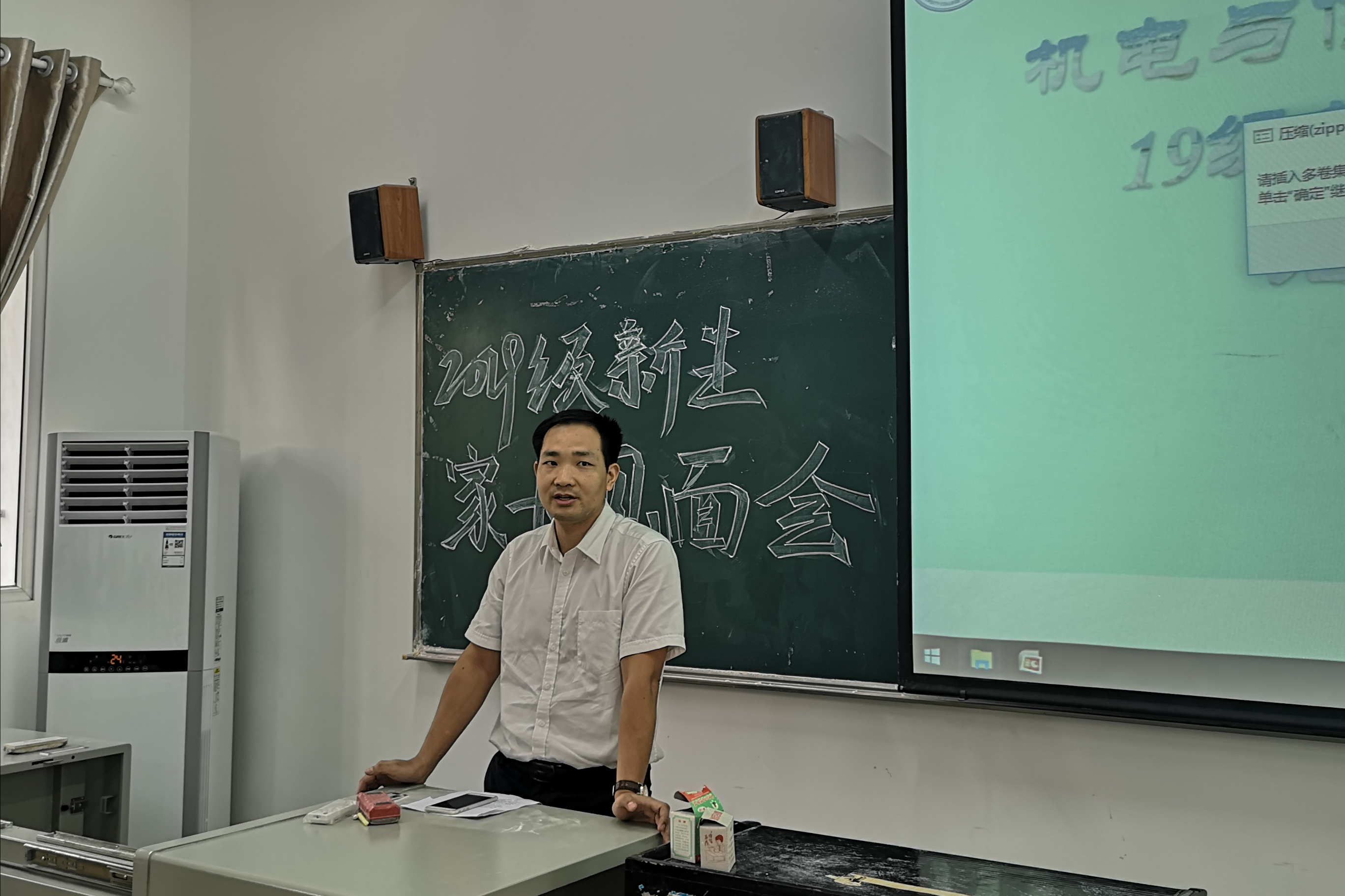 会议开始,付兵代表机电系对2019级新生家长表示热烈欢迎,并为家长逐一介绍各班班主任。他以历年来我系竞赛活动和创新创业取得的优良成绩为切入点,详细地介绍了我系对员工的人才培养模式、学科竞赛、员工就业、校企合作等方面。