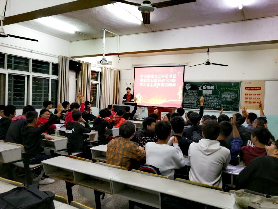 本网讯(员工记者刘瑞华)5月14日晚,在西校区各自习室,我系各班开展以“学习贯彻习近平总书记在纪念五四运动100周年大会上重要讲话精神"主题团课活动。活动由各班团支书主持,全班成员一同参与。