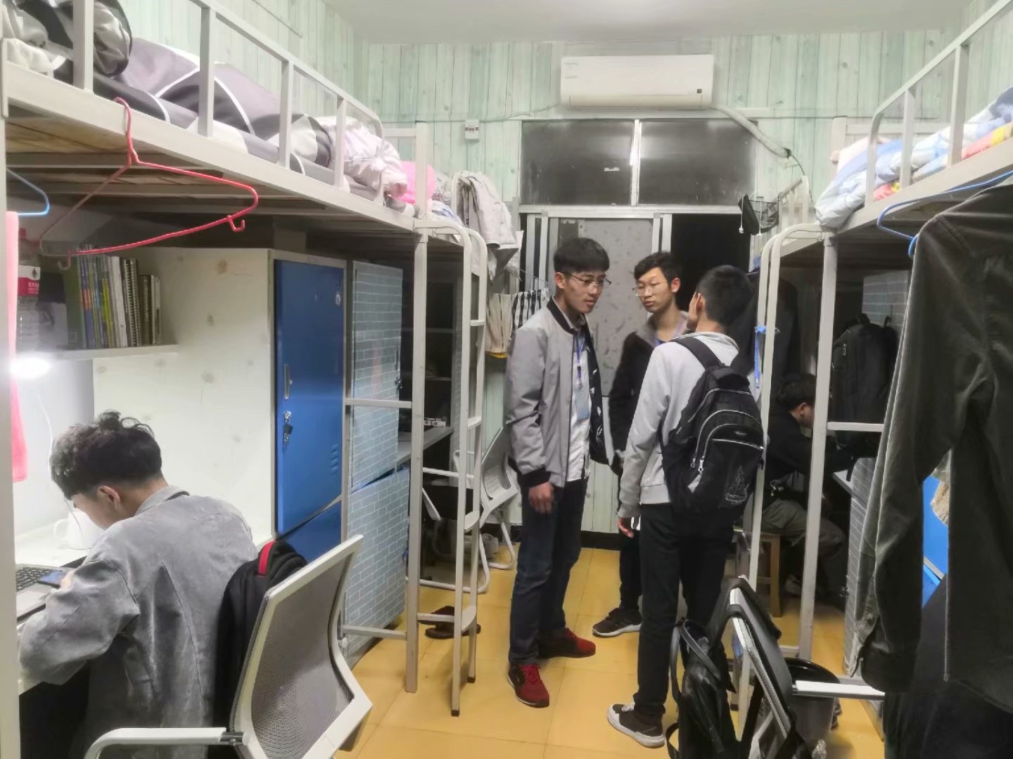 我系团学组织各部门成员兵分几路,有针对性、目前性的进行宿舍检查。各组成员在进行宿舍检查的同时也向各寝室同学强调了宿舍用水用电的安全问题,提出了不足之处应如何改进的措施。检查过程中,气氛融洽,更像是我系团学组织向我系员工传递安全知识交流会。我系团学组织成员也始终保持着细心、严谨、公平、公正的态度,有条不紊的检查所有可能的安全隐患,认真记录各个寝室的查寝情况。活动结束后,全体检查人员集合,由我系团组织员工会生活部部长符史山收集汇总本次的查寝结果。