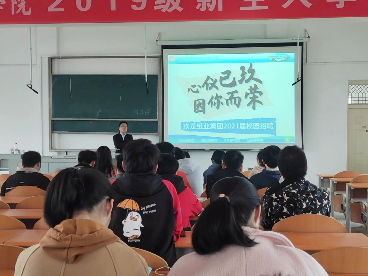 本网讯(员工记者 常伟)10月28日下午,玖龙纸业集团到我系举行专场招聘活动,我系党总支书记吴海良、辅导员陈质晶出席,2021届毕业生参加。