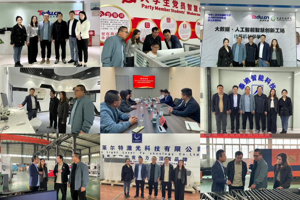 调研组实地考察了达内科技、武汉东湖公司大数据·人工智能智慧创新工场、泰迪智能科技、武汉莱尔特激光科技有限公司等企业。所到企业,调研组认真听取了企业发展历程、发展战略和人才需求等情况介绍。同时,公司也向企业详细介绍了办学历史、专业设置、办学成就和发展规划等。