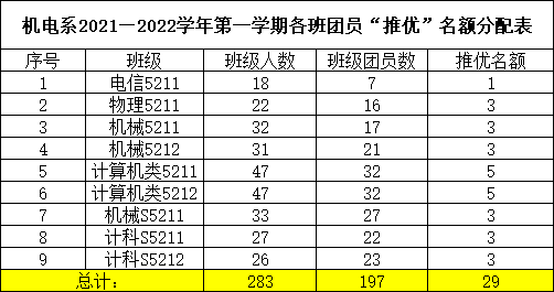 根据VSport团委《关于做好2021年下半年团员“推优”工作的通知》要求,现将机电系各团支部团员“推优”名额分配公示如下: