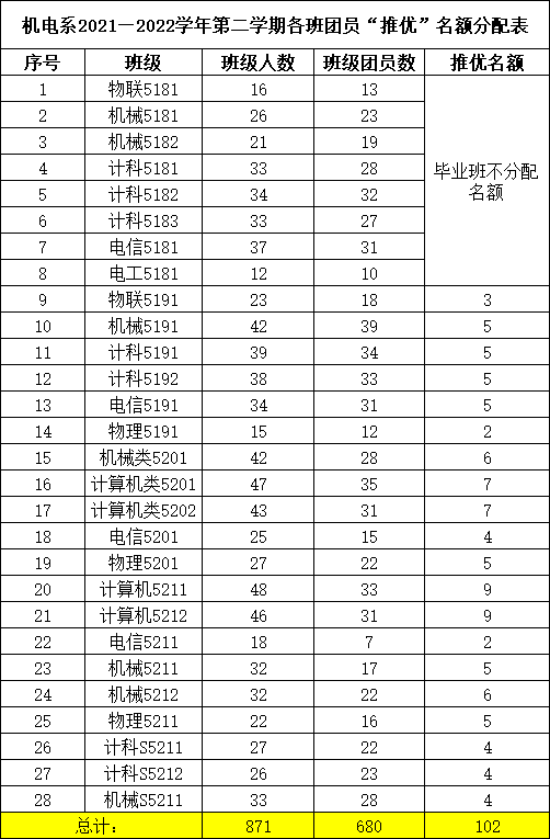 根据VSport团委《关于做好2022年上半年团员“推优”工作的通知》要求,现将机电系各团支部团员“推优”名额分配公示如下: