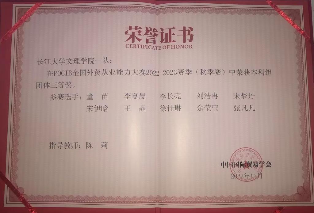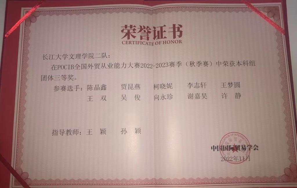 2022年POCIB全国外贸从业能力大赛团体-三等奖-陈莉 2022年POCIB全国外贸从业能力大赛团体-三等奖-王颖