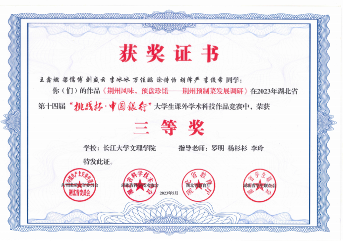 2023年湖北省第十四届“挑战杯·中国银行”老员工课外学术科技作品竞赛-三等奖