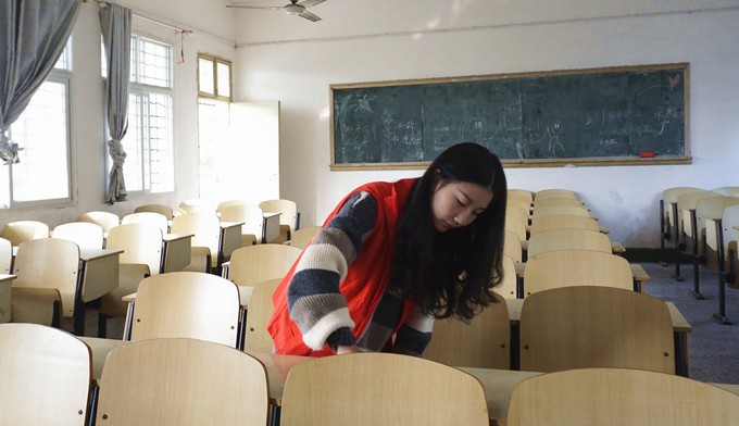 当天早上8:40在一教门口集合并分配任务, 23名志愿者被分为7个小组,每个小组负责一个教室,活动开展过程中由小组长带领组员对地面、桌椅、座椅之间的缝隙、窗户、黑板和走廊进行了清洁。活动结束后所有人在二教门口集合并回收清扫工具并合照留念。