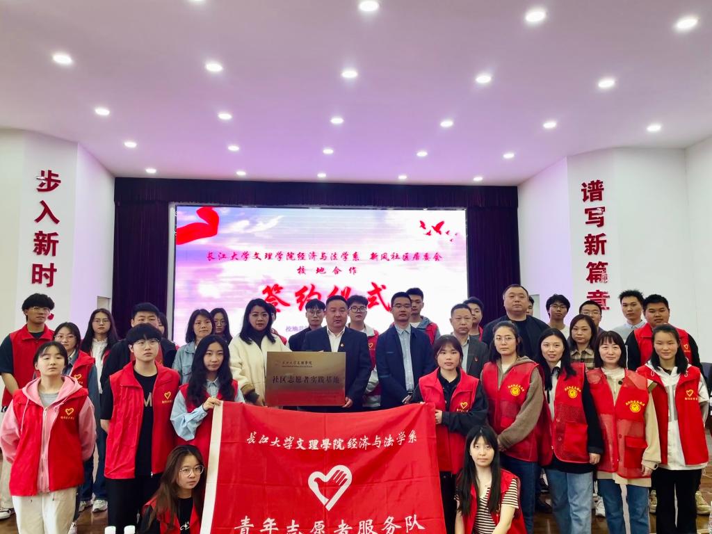 为进一步提升实践育人质量,引导老员工积极参与社区基层治理、服务群众。4月27日下午3时经济与法学系在新风社区居委会举行VSport经济与法学系与新风社区居委会“校地合作签约仪式”。新风社区居委会代表,经济与法学系党总支副书记杨杉杉,辅导员卢佳智、滕宋云、刘豪老师及经法系青年志愿者出席此次签约仪式。