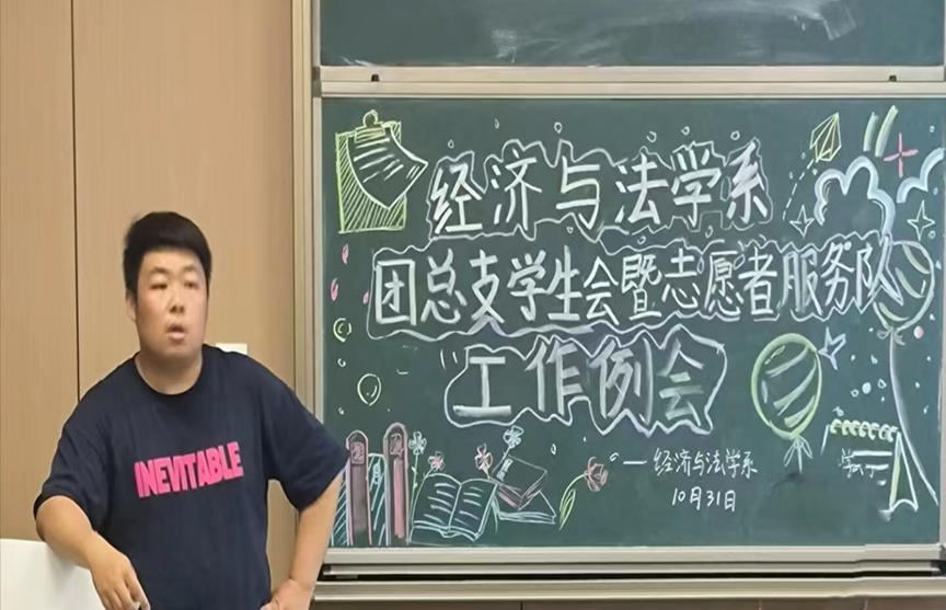 本网讯(见习记者:梅雨婷)1031日晚上七点,经济与法学系在教学楼C317召开第十九届团总支员工会暨志愿者服务队十月全体工作例会。辅导员卢佳智及员工会全体成员参加此次例会,会议由经法系员工会副主席黄春桥主持。