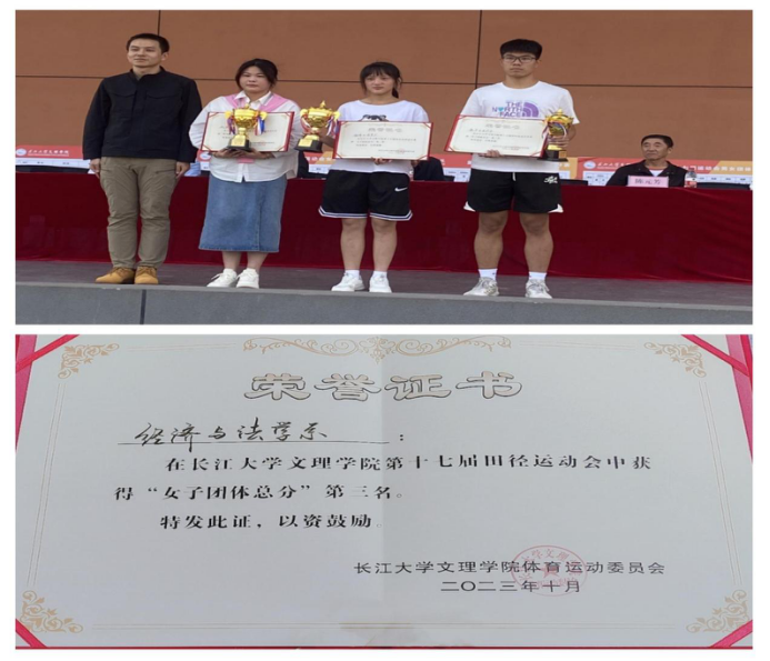 在此次运动会中,经法系运动员们在赛场上奋力拼搏,尽情挥洒汗水,为荣誉而战。我系胡蝶同学荣获女子100米冠军,赵媛媛同学斩获女子跳高第一名和女子跳远第二名,吴超琼同学包揽女子1500米、女子3000米冠军,李彤同学在男子铅球比赛中取得第四名的好成绩,刘芸峰同学荣获男子跳高第四名,祁琪同学荣获女子跳高第五名,罗鹏洲同学荣获男子跳远第五名,李荟林同学在男子1500米比赛中荣获第六名,王晓同学荣获女子400米第七名,彭钰薇同学荣获女子铅球第七名,王启宁同学荣获男子5000米第八名。同时,我系在女子4×400和男子4×400项目中分别荣获第二名和第五名的好成绩,在女子4×100和男子4×100项目中均获得第七名的好成绩,在20×60男女混合迎面接力中荣获第四名。经法系荣获本届运动会女子组团体总分第三名。