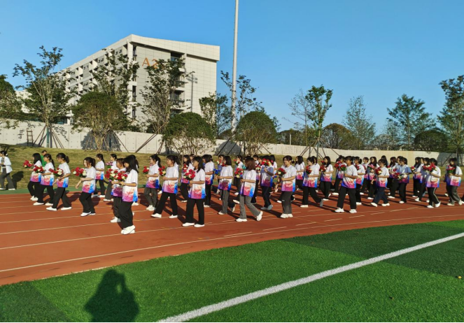 10月20日上午8点,运动会开幕式在新校区操场隆重举行。开幕式上由经法系组成的鲜花方阵和运动员方阵,喊着嘹亮的口号,迈着矫健的步伐走入会场,彰显了经法学子团结拼搏、昂扬向上的精神风貌。