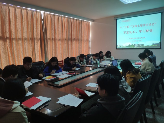 本网讯(通讯员 杨晓旭)今天(12月13日)上午,经济与法学系员工党支部围绕“不忘初心、牢记使命”主题教育要求,认真开展12月份“支部主题党日”活动。活动由经法系党总支副书记、员工党支部书记王震主持,全体在校员工党员参加活动。