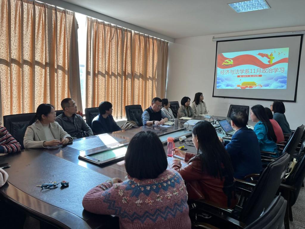 11月18日下午13:00,经法系全体教职工在系会议室开展11月政治学习和支部主题党日活动。会议由党总支书记李成军主持。