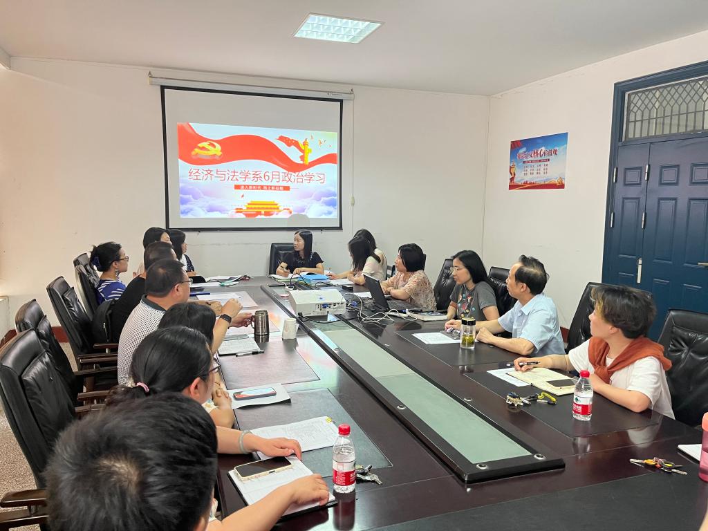 6月23日下午15:00,经法系全体教职工在系会议室开展6月政治学习和支部主题党日活动。会议由党总支书记李成军主持。