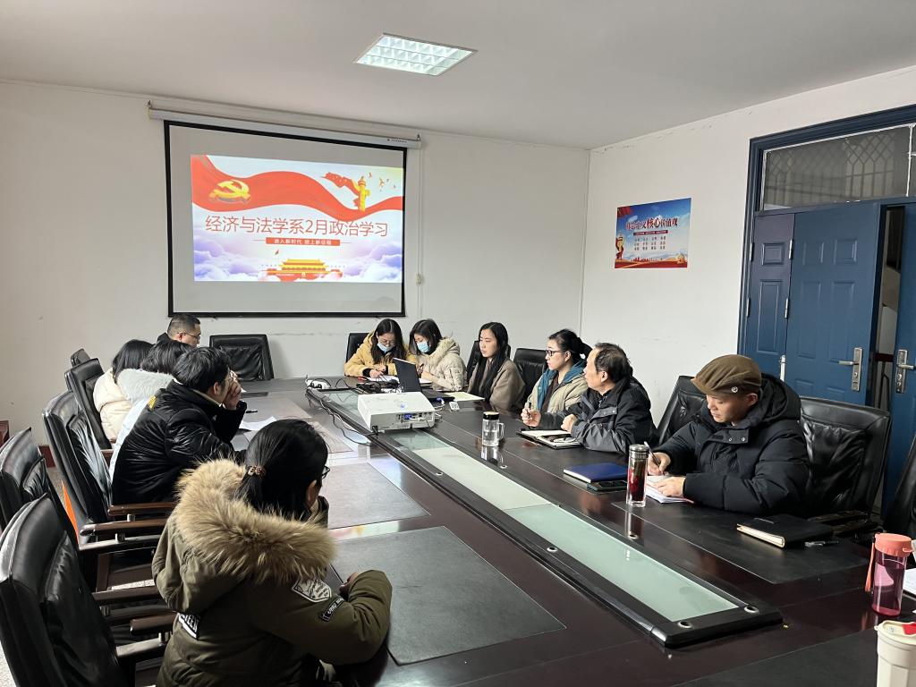 2月23日下午14:30,经法系全体教职工在系会议室开展2月政治学习和支部主题党日活动。会议由党总支书记邹姜主持。