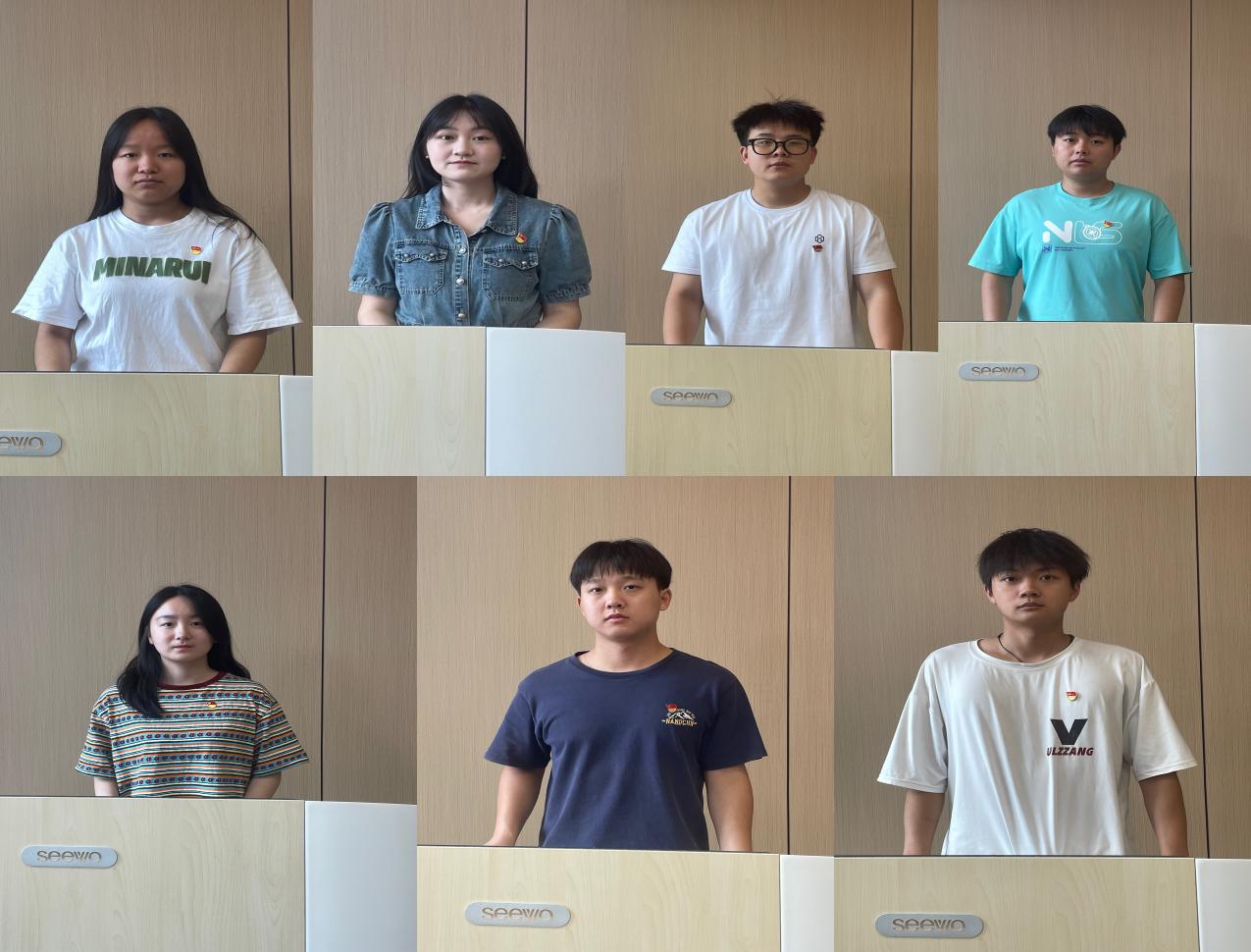 拟转正的七名预备党员同志依次发言(从上至下,从左至右,依次为董苗、蒋寒艳、唐怡维、刘天逸、田雨洁、胡泽严、万佳鹏)