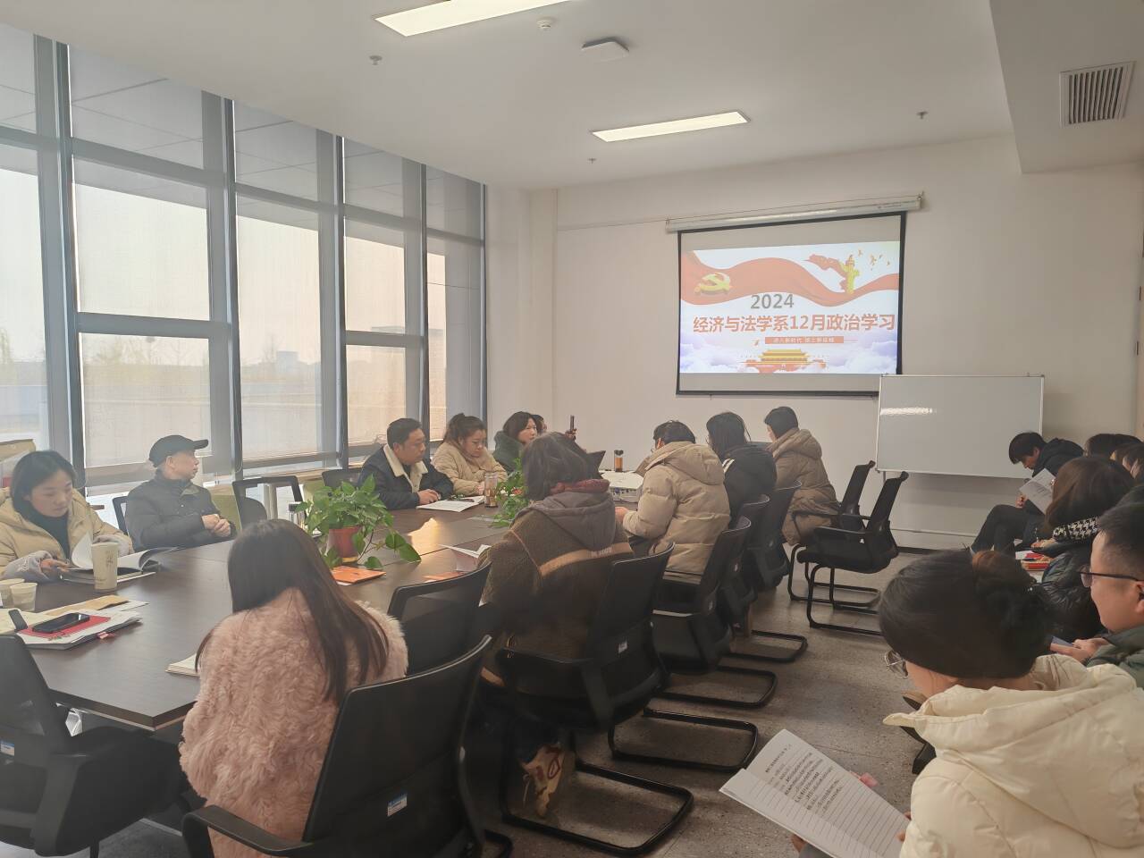 12月18日下午16:00,经法系教工支部在系会议室开展12月政治学习和支部主题党日活动。会议由教工党支部书记陈莉主持。