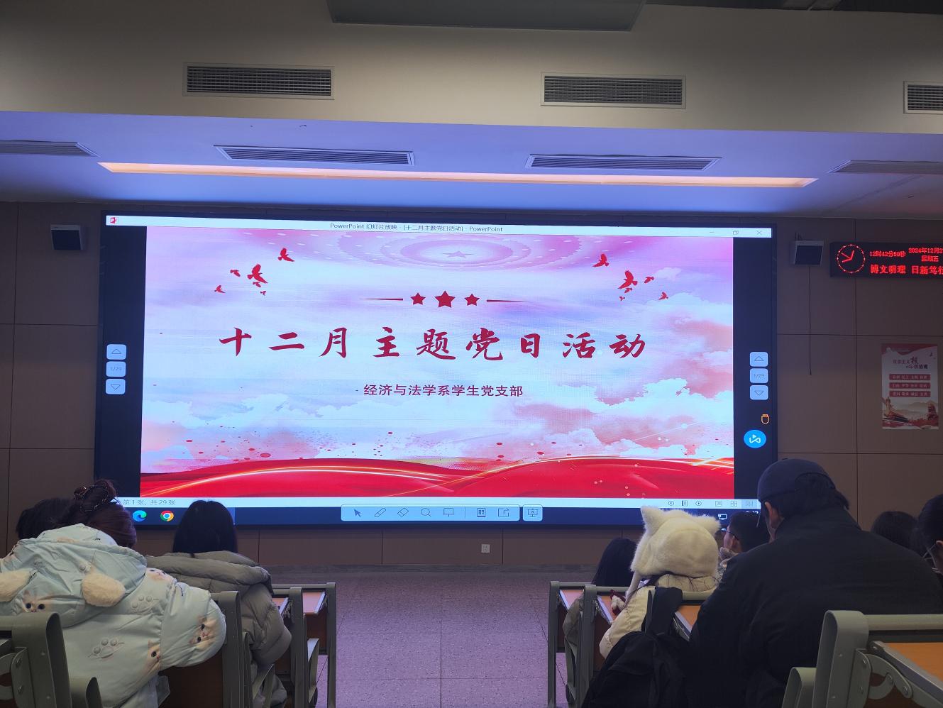 本网讯(员工记者 王小庆)2024年12月27日中午12:00,经法系员工党支部党员、入党积极分子在教学楼B-214开展12月政治学习和支部主题党日活动。本次会议,由员工党支部书记杨杉杉主持。