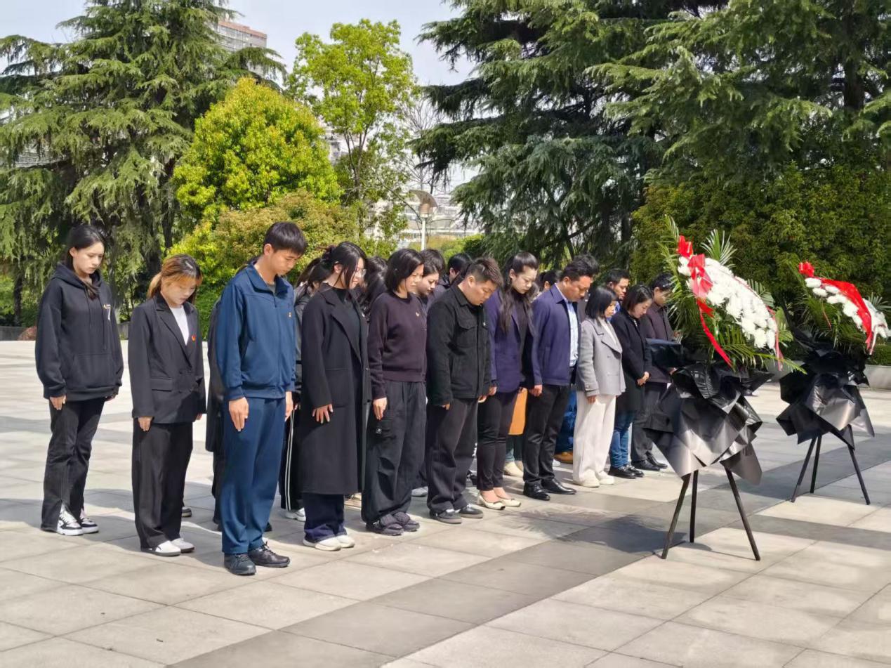本网讯(员工记者:何美嘉) 4 月 1 日,清明前夕,为弘扬爱国主义精神,赓续红色血脉,经济与法学系奔赴荆州市沙市区革命烈士陵园,隆重举行 “缅怀先烈志,共铸中华魂” 清明祭扫活动。经济与法学系党总支书记辛裕、常务副主任罗明、党总支副书记杨杉杉、辅导员卢佳智、滕宋云、刘曼莹、荆州市市直律师事务所第一、第二联合党支部、员工党员、员工干部代表,共计40余人参与活动。