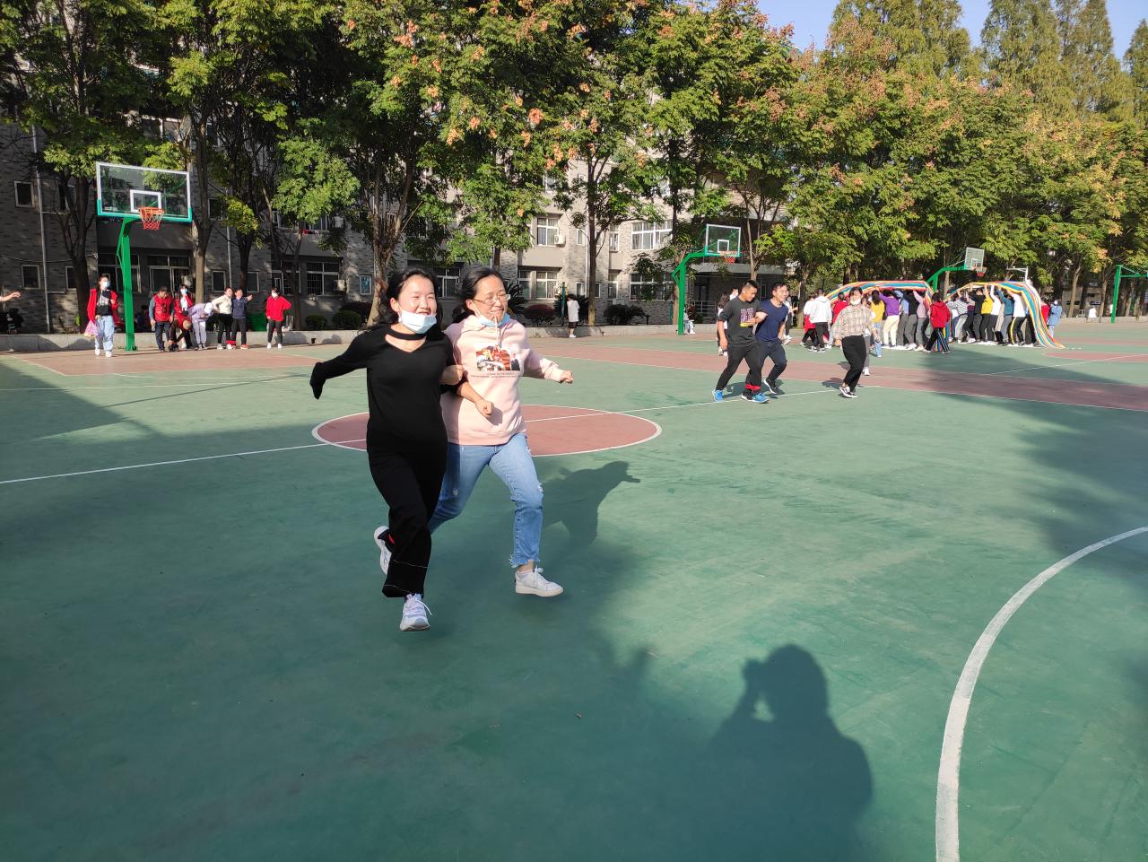 10月22日下午,公司第七届教职工趣味运动会在城中校区篮球场举行,我系全体教职工积极主动参与到各项比赛中,此次教职工趣味运动会设有踢毽入篮、定点投篮、镖镖红中、套圈等4项个人项目和两人三足、珠行万里、车轮滚滚、同心鼓颠球、毛毛虫接力等5项集体项目。9项比赛均设一二三等奖。