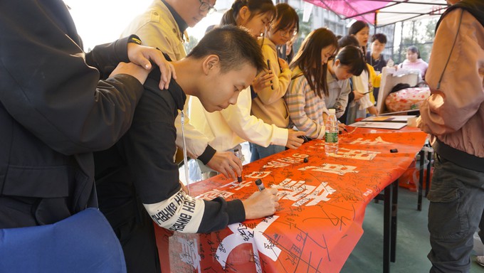 活动现场,同学们通过宣读倡议书和观看宣传板等形式接受消防安全教育。随后,同学们在印制有“寝室是我家,安全用电靠大家”的消防主题条幅上签下了自己的名字,还有同学写下了消防口号和安全寄语。希望同学们以此次活动为契机,能够主动检查和消除自己身边的火灾隐患,积极向同学们宣传消防知识,提高火灾应急处置能力和自救逃生能力,增强消防安全意识,共建安全和谐校园。
