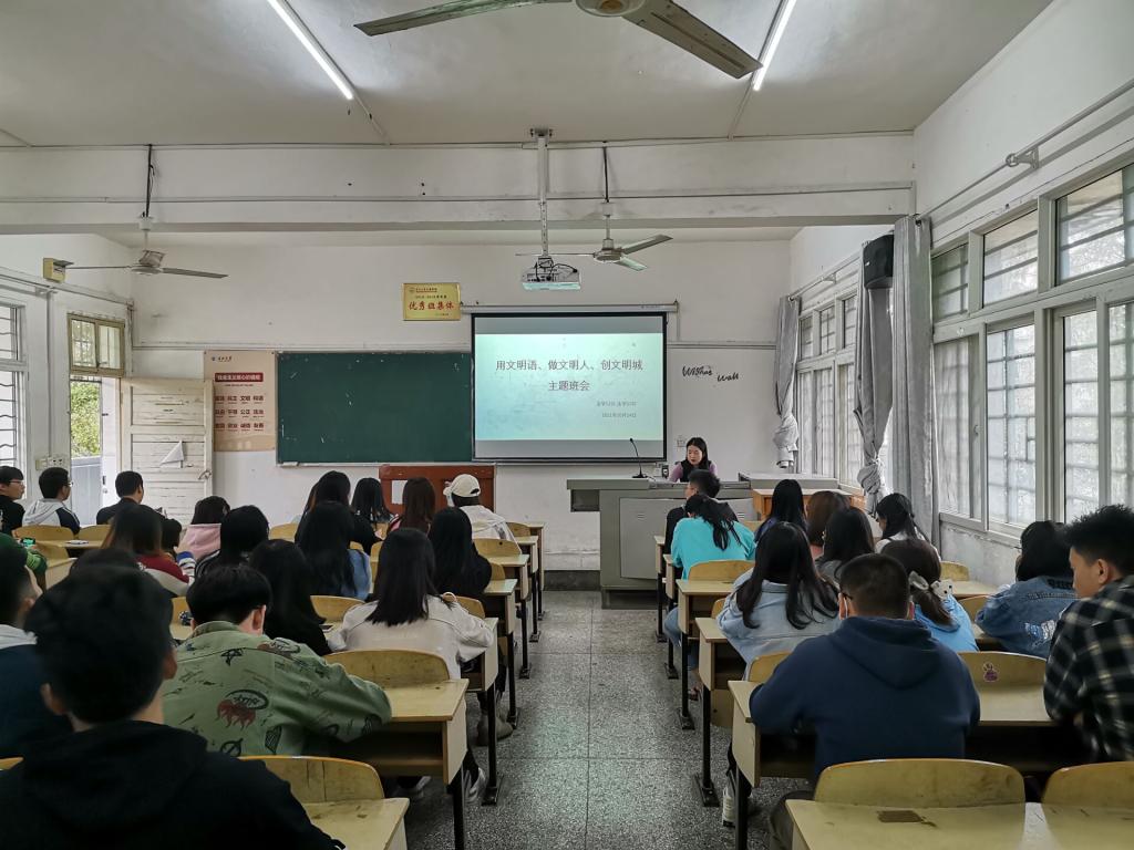 辅导员向同学们介绍荆州市创建文明城市的活动,提醒同学们注意日常行为举止、文明用语等事项。积极维护公共环境,在公共区域不随地吐痰、乱丢垃圾,不在公共区域抽烟。同时,要求同学们注意个人卫生,个人内务自觉整理,维护寝室干净的卫生环境。