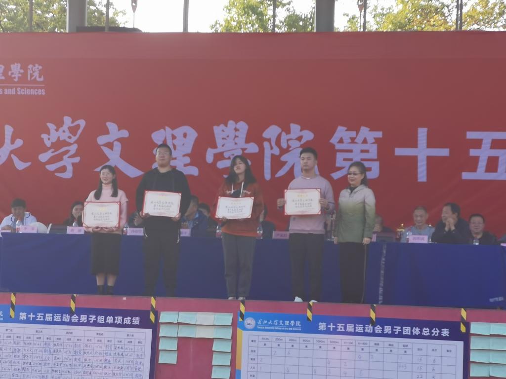 30日下午三时,本次运动会闭幕式在西校区运动场举行。院领导及各部门主要负责人为获奖代表颁奖。经法系在本届运动会中获得体育道德风尚奖。第十五届运动于10月30日下午正式闭幕。