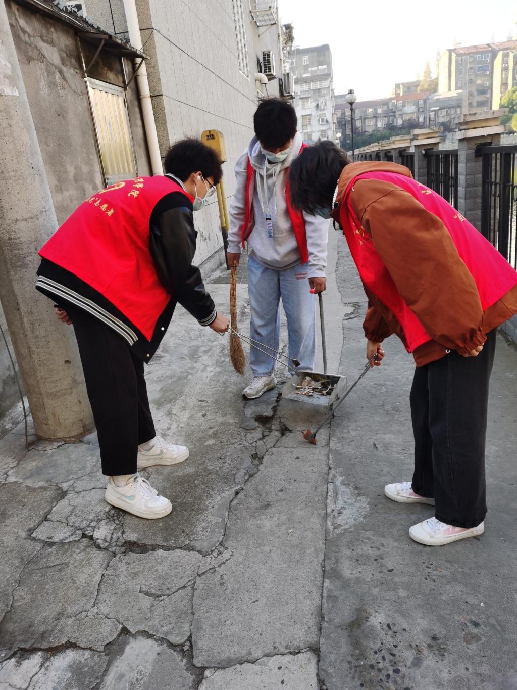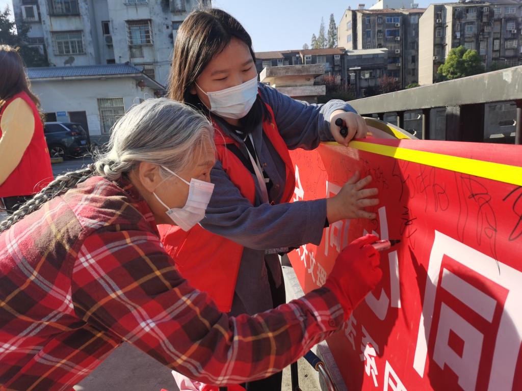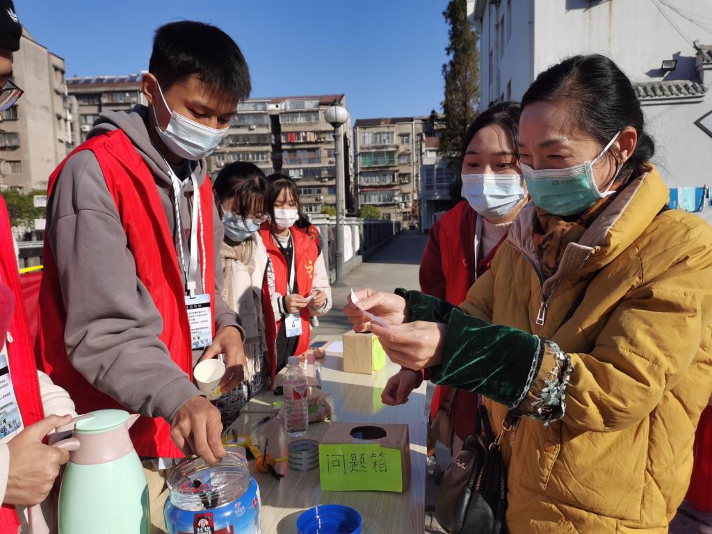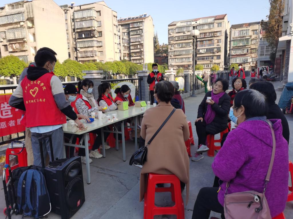 活动开始,志愿者服务队强调本次活动的内容和注意事项。活动一共分为问答组和入户组。问答组的成员,在组长的带领下,进行社区消防安全知识有奖问答比赛和签字活动,并为居民分发奖品。入户组在组长的带领下走进居民家中开展慰问活动,普及消防安全知识,并与社区居民展开交流互动。活动过程中,志愿者们积极维护社区环境,主动清扫道路,体现了“奉献、友爱、互助、进步”的志愿者精神。