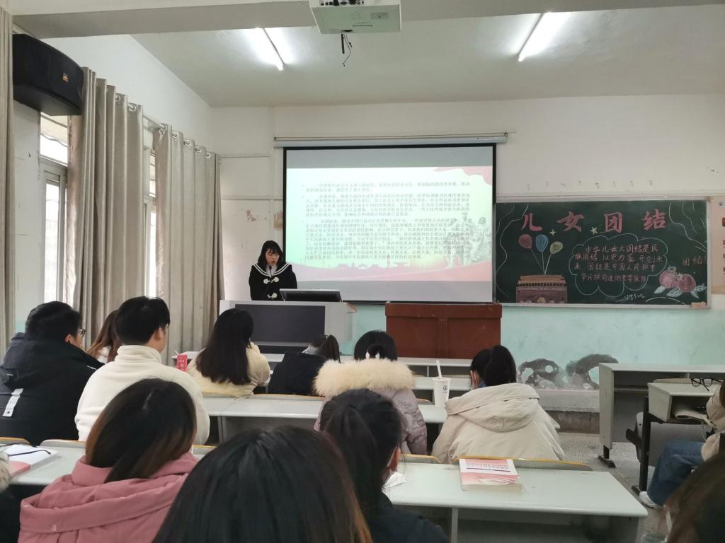 本网讯(见习记者  曾清清 贾思雪) 为促进中华儿女大团结,凝心聚力,充分统一战线的永恒主题。12月10日,经法系团总支组织各班开展“加强中华儿女大团结”主题团课活动。