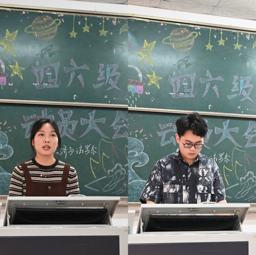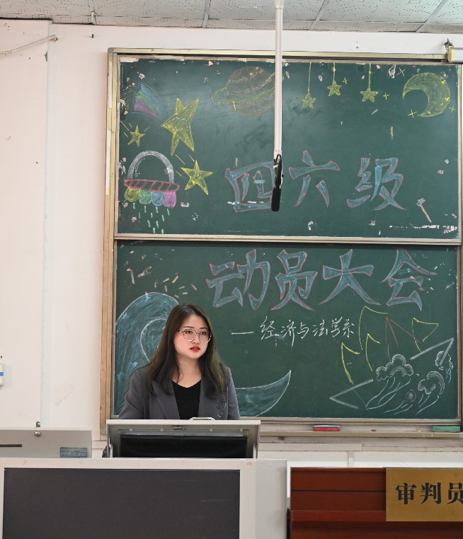 本网讯(见习记者:田琼钕)为了营造良好的备考环境,调整同学们的应考心态,为12月份即将到来的大学英语四六级考试做好准备, 202211101600,经济与法学系于四教300开展英语四六级考试动员大会。与会领导与嘉宾有经法系党总支副书记杨杉杉,辅导员滕宋云。此次大会邀请到机电与信息工程系辅导员燕梦蝶老师为我系学子分享英语四六级考试的相关技巧与经验。大会由滕宋云主持,经法系2021级全体员工参与大会。