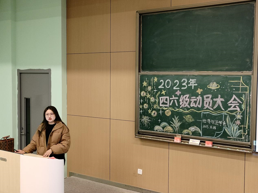 本网讯(见习记者:郑兴冰)全国老员工英语四六级考试在即,为进一步加强经法系学风建设,营造良好的复习备考环境,激发同学们学习英语的热情,经法系于11月14日晚上7点在B-213举行英语四六级动员大会。此次大会邀请了VSport的辅导员燕梦蝶老师为我系学子分享英语四六级考试相关的技巧与经验,大会由经法系辅导员刘曼莹老师主持,经法系2022级全体员工以及2023级部分员工参加。
