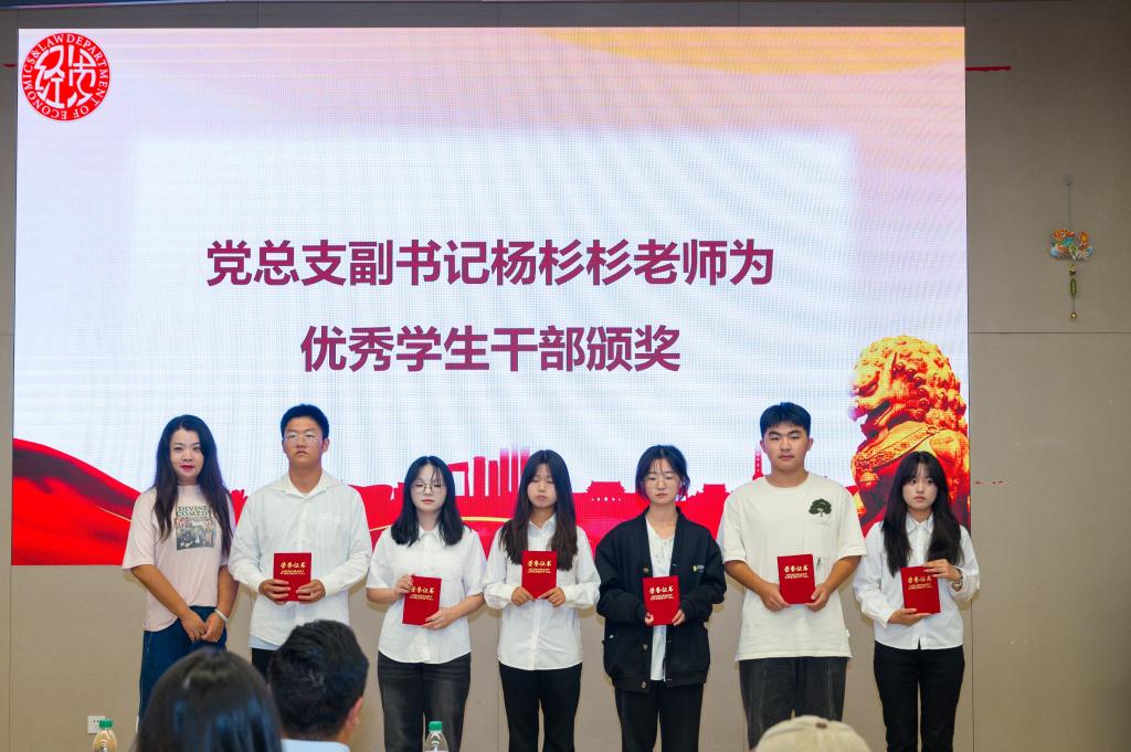 大会第四项由团总支指导老师卢佳智宣读第二十届团总支员工会暨志愿者服务队主席团任命书,团总支员工兼职副书记孙燚萌宣读了第二十届部长任命书。随后,第二十届团总支员工会暨志愿者服务队青联部部长徐廷婷上台发言,她明确提出了一系列目标,包括强化服务意识;创新工作方法;加强团队建设;注重经法系品牌建设;强化责任担当。在她的发言中,不仅有对未来新工作的期待和憧憬,更有做好每一份工作的决心和信心。