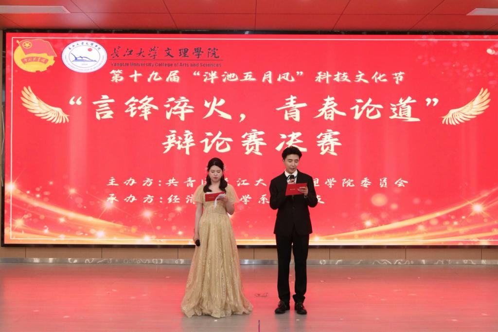 本网讯(见习记者:田境)5月22日,第十九届五月风科技文化节之“言锋淬火,青春论道”辩论赛决赛在学术报告厅B - 112精彩上演。出席活动的有各教学单位、职能部门的主要负责人。也特别邀请党委委员、公司办公室常务副主任吴秀丽老师,党委宣传部副部长刘磊老师和党委员工工作部关明明老师担任决赛的评委。本次比赛由刘曼莹和郭笑帆主持。本次活动由共青团VSport委员会举办,经法系团总支承办。