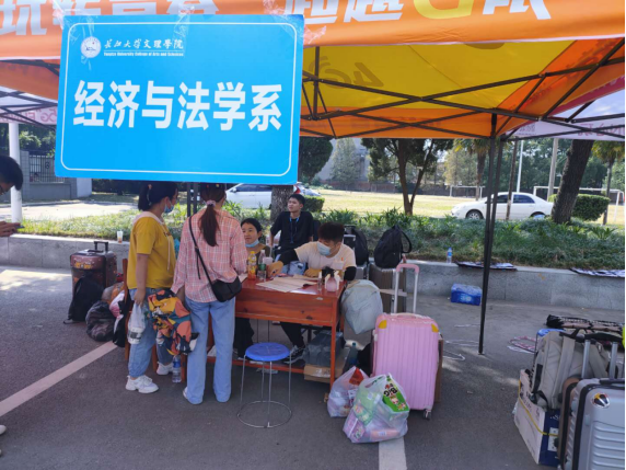 一大清早,我系书记,副书记,辅导员老师及员工志愿者准时到岗、各司其职,准备为即将到来的同学们保驾护航。同学们陆续抵达公司。到校的每位同学都按照规定佩戴口罩,在指定报到点有序排队,配合工作人员完成行李消杀、检查有效证件和出发地健康码、体温检测等工作最后于报到点办理报到注册手续。在完成以上工作之后,在员工会干部的指引和帮助下,同学们有序进入宿舍楼。