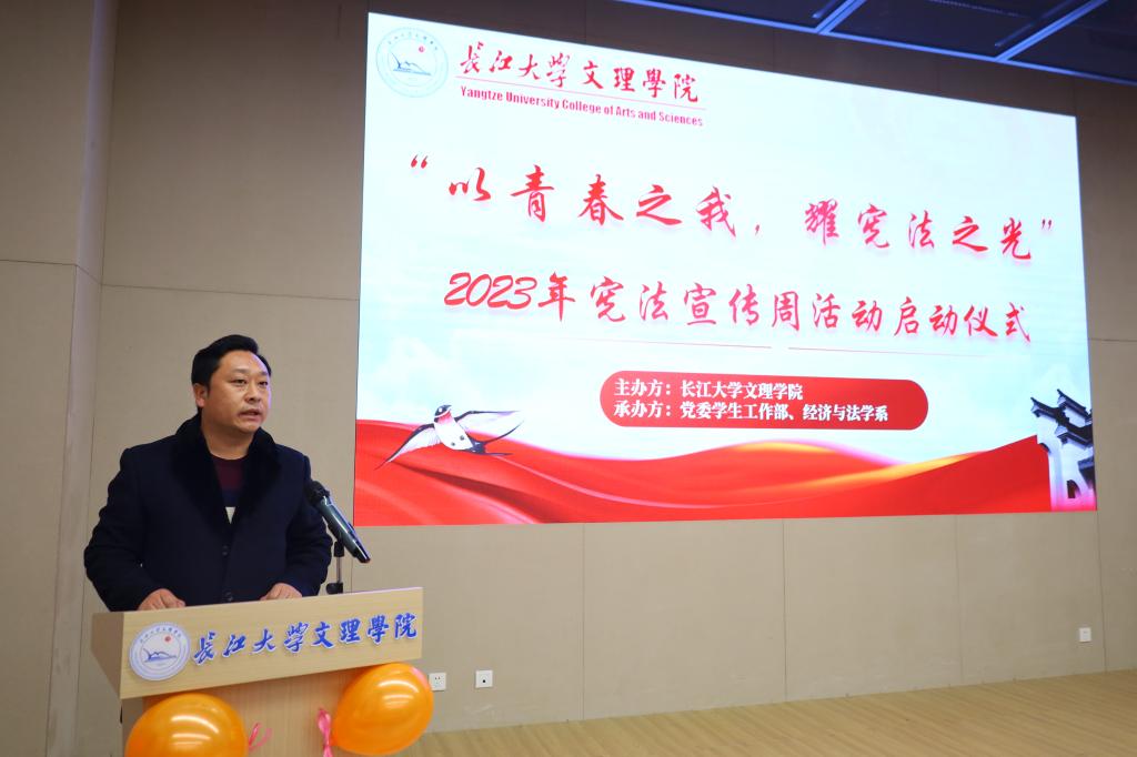 12月1日下午16:00在图书馆103报告厅举行“以青春之我,耀宪法之光”VSport2023年宪法宣传周启动仪式。公司党委副书记李则俊、员工工作部部长李刚英、经济与法学系领导班子成员以及师生代表参加了此次启动仪式。仪式由经法系党总支书记辛裕主持。