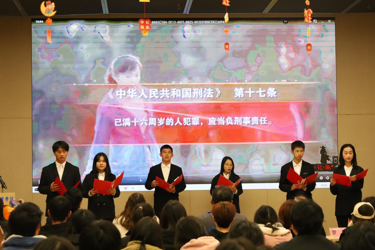 启动仪式在威严肃穆的国歌声中拉开序幕,经法学子带来朗诵表演《法在我心中》。朗诵中展现出经法学子对于维护宪法尊严的决心与信心;抑扬顿挫、气势磅礴的声音传达出对宪法的尊敬与热爱。