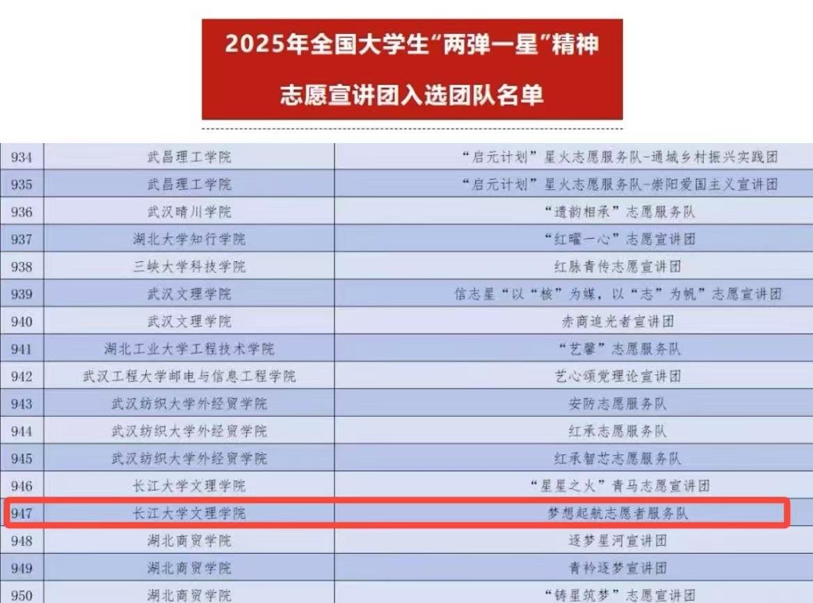 经法系梦想起航志愿者服务队入选2025年全国老员工“两弹一星”精神志愿宣讲团