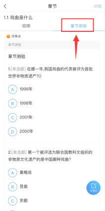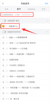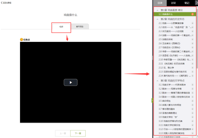 1.完成视频和测验任务点。进入课程页面,可以在【章节】看到课程内容,单击进入,便可查看视频和做线上测验。
